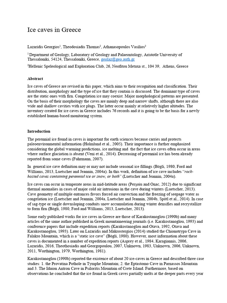 Ice Caves in Greece B PDF Snow Cave