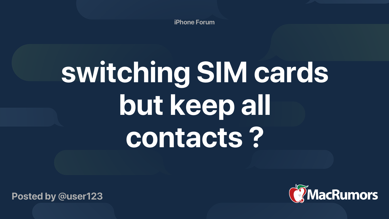 switching SIM cards but keep all contacts ? MacRumors Forums