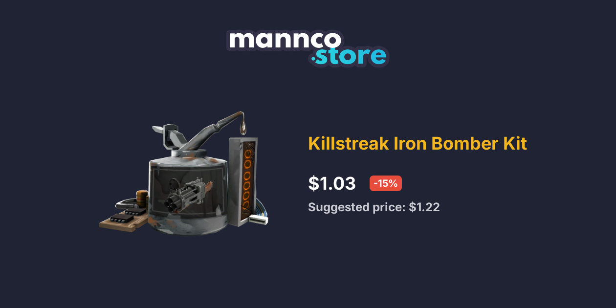 Looking for a specific item? Used to add killstreak properties and a cool sheen to an item. Prices and stats for specialized killstreak iron bomber, an item in team fortress 2. View prices and stock details for killstreak iron bomber kit, an team fortress 2 killstreak sold for 60.55 ref Placing a buy order allows you to automatically purchase items.