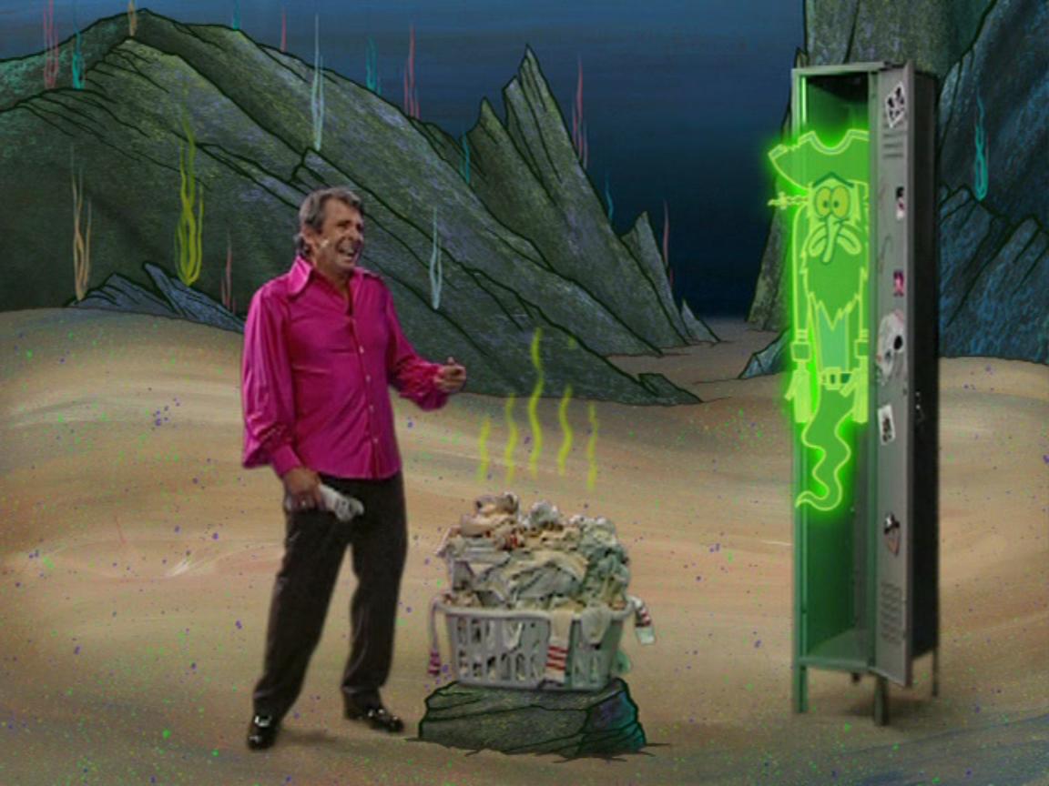 The flying dutchman is hovering outside davy jones' locker, with spongebob standing on his open palm and chattering away] spongebob : There was a spongebob episode with davy jones in it and his locker was literally a locker you might find at any american high school, and the joke was.