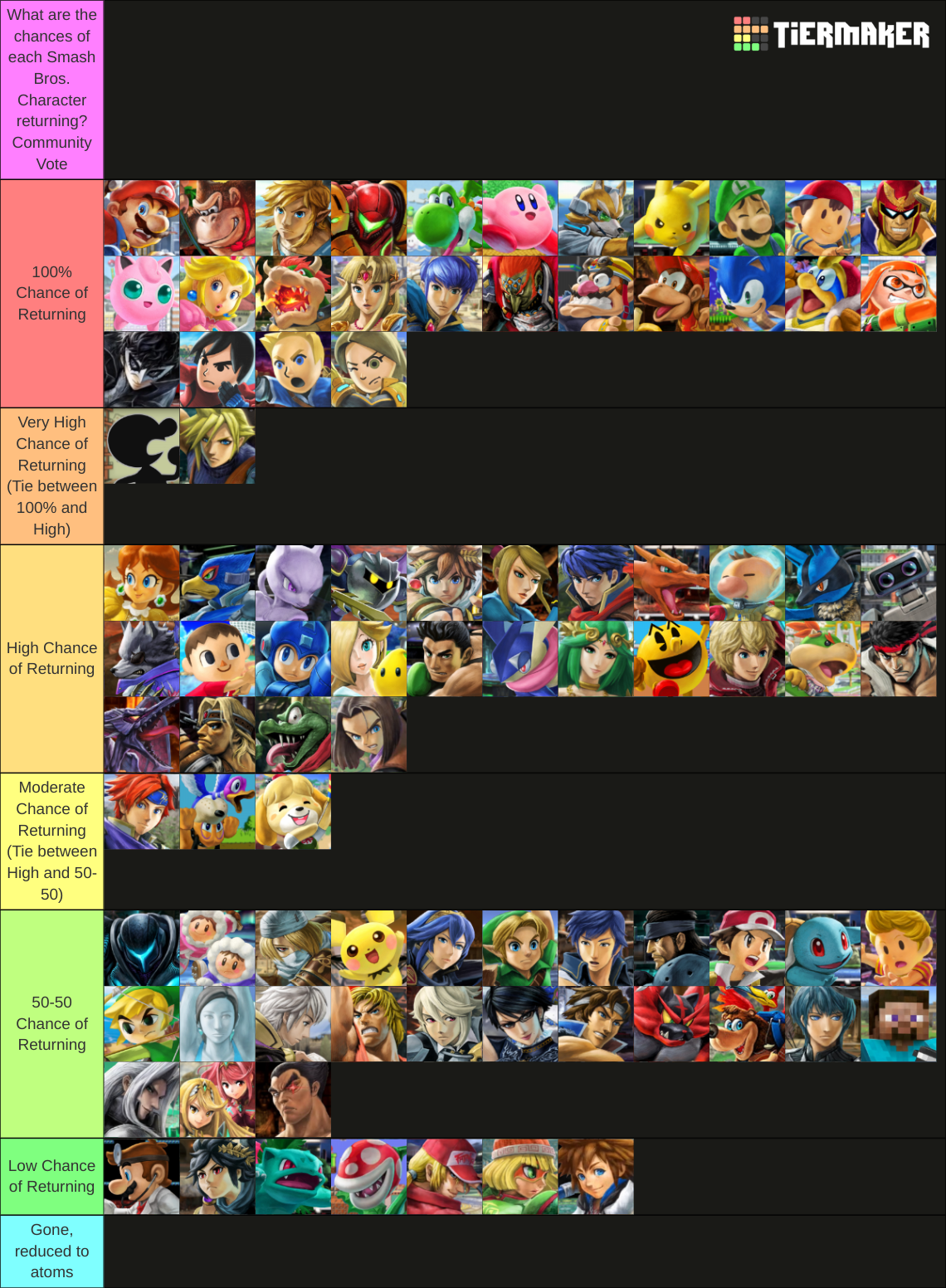 The Super Smash Bros. 6 Chance of Return Tier List, as voted by YOU