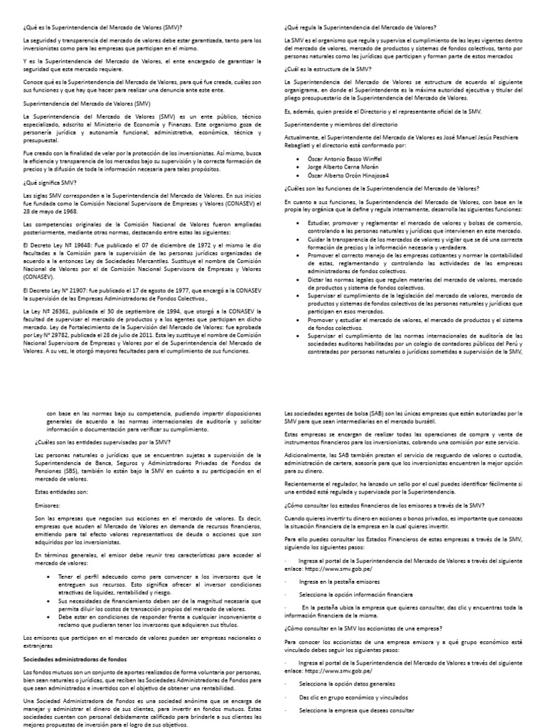 Qué es la Superintendencia del Mercado de Valores PDF Bolsa de