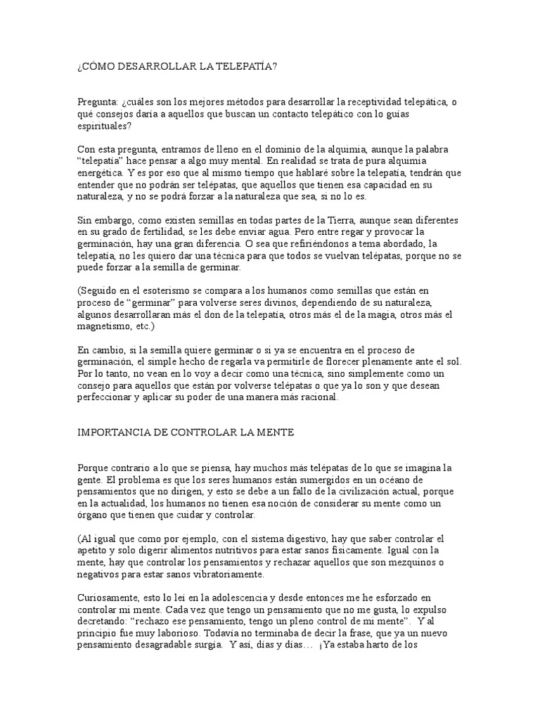 Telepatía Cómo Desarrollar La Telepatía PDF Telepatía Mente