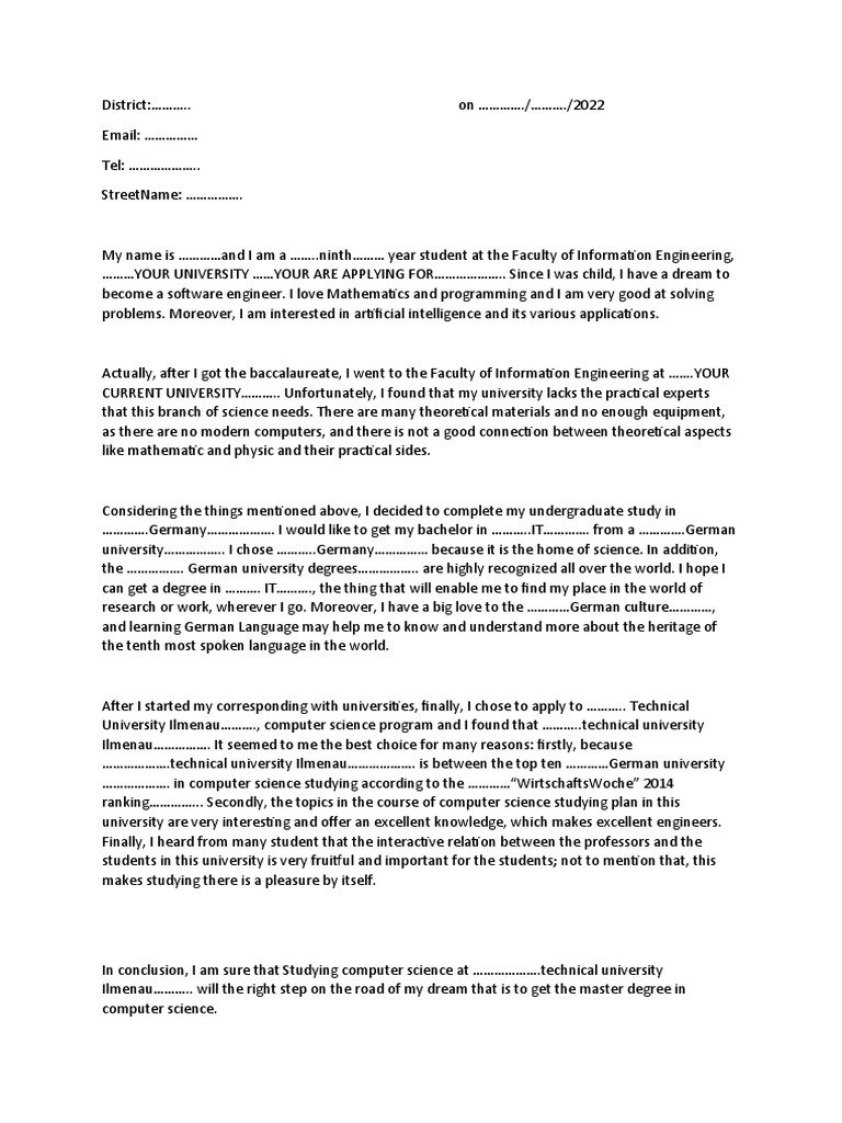 Engineer's Motivation Letter PDF Bachelor's Degree Science