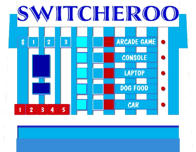 The updated prop with the dollar. This will indicate how many are right. Here's switcheroo with the lighted spaces. A car and four small prizes are shown to the contestant. Switcheroo posted on august 12, 2013.