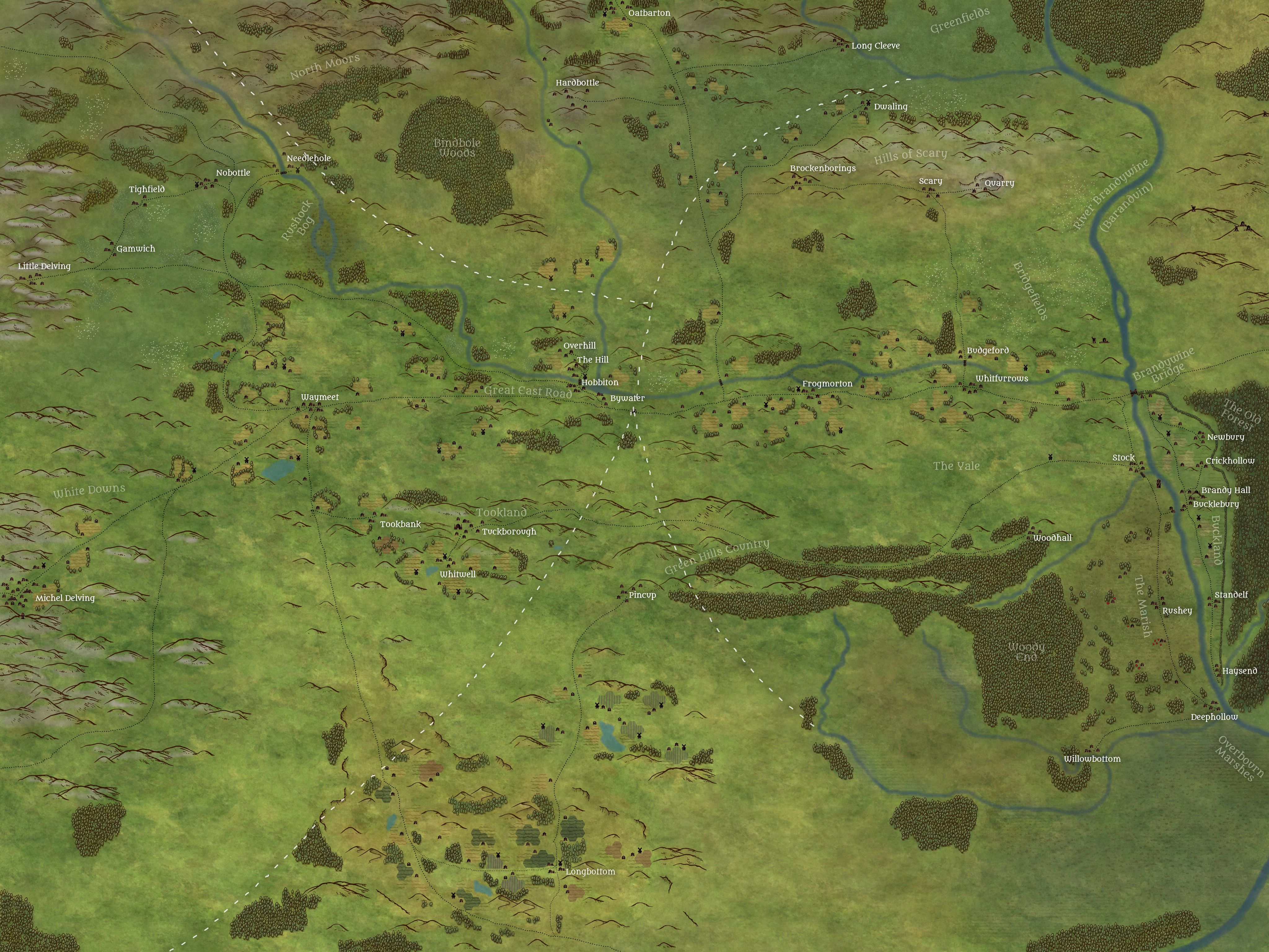 Pieces (only) of all four farthings , all of buckland , and a sliver of land to the east of the. In the menu to the right you can show events, places and character movements. The shire is a region of j. This is a high resolution interactive map of j.r.r. Tolkien's maps, the shire is located at about the.