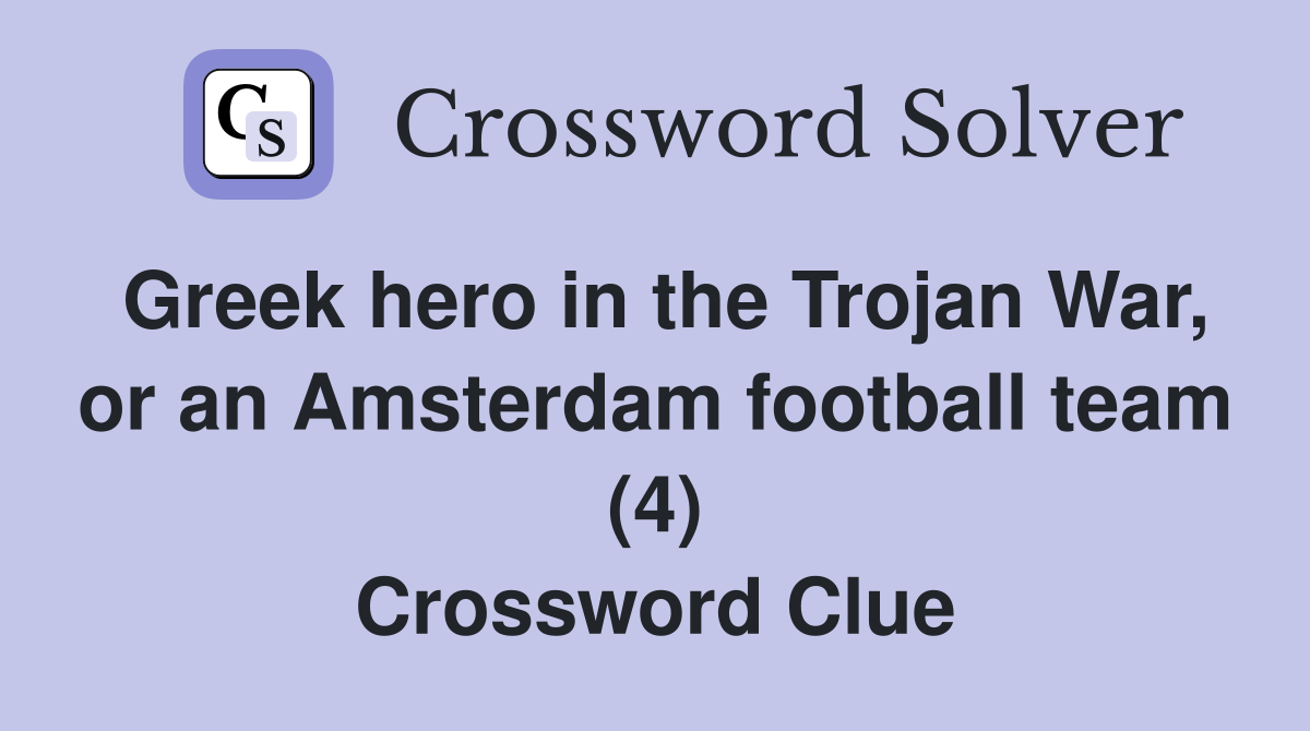 On this page, you will find the trojan war hero crossword clue answers and solutions. Find the answer to the crossword puzzle clue trojan war hero from dan word website. Find the answer to the crossword clue trojan war hero from the new york times puzzle. Trojan war hero crossword clue. Find out the possible solutions for the crossword puzzle.