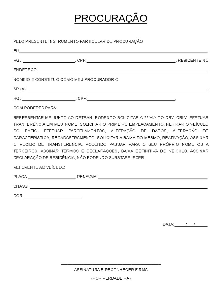 Procuração Transferência de Veículo. PDF