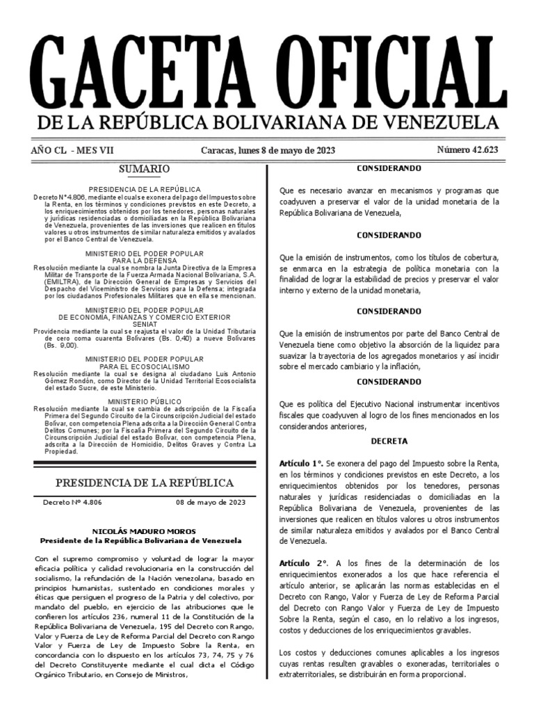 Unidad Tributaria 08.05.2023 PDF Venezuela Impuesto sobre la renta