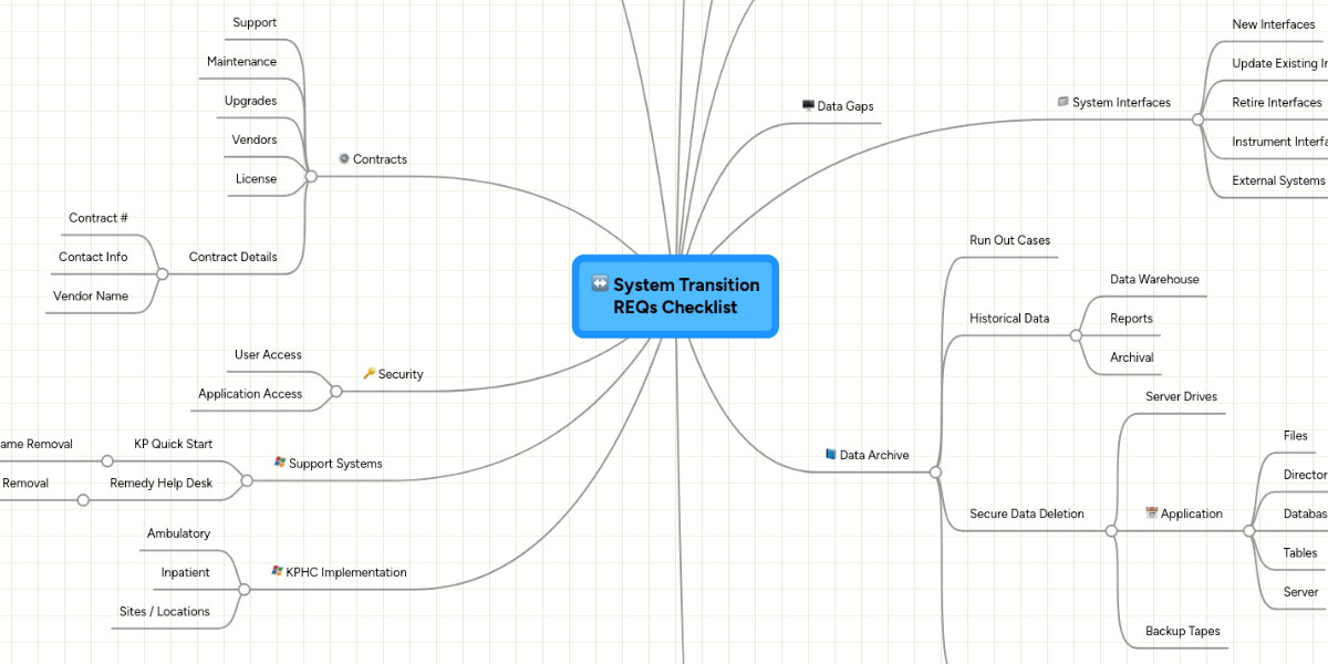 System Transition REQs Checklist MindMeister Mind Map