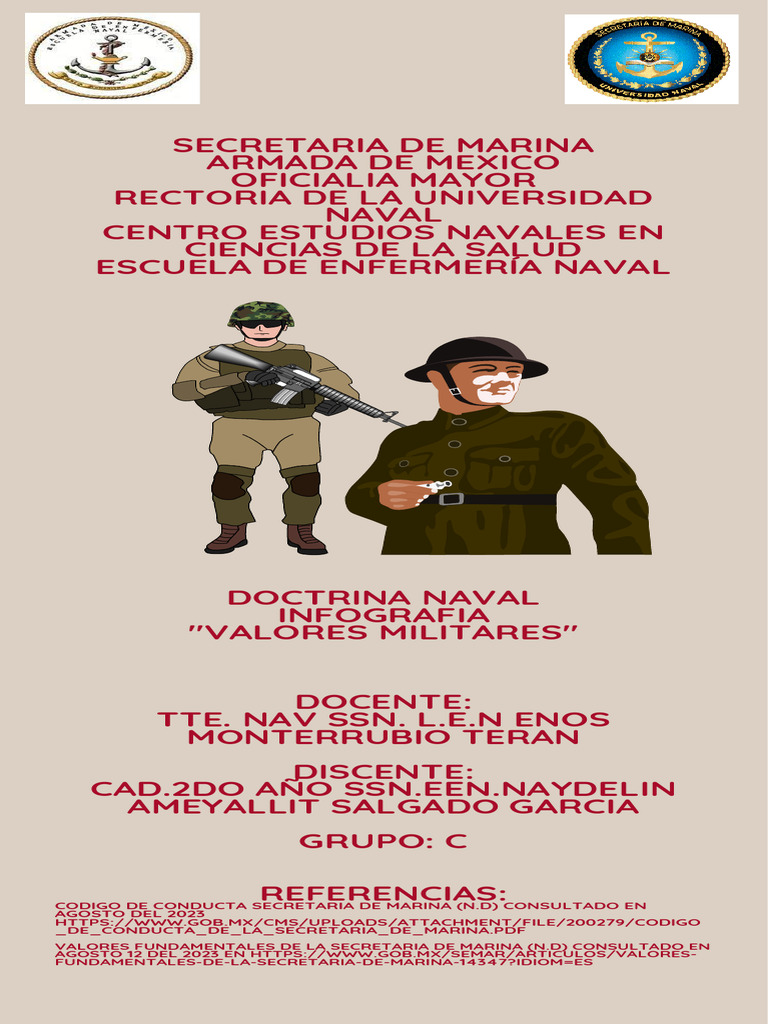 Estos nueve valores −integridad, patriotismo, espíritu de cuerpo, disciplina, lealtad, honor,. São os valores militares, que. ¿cuáles son los valores que debe tener un militar? Una publicación que define los valores fundamentales del ejército de tierra, como el amor a la patria, el compañerismo, la disciplina,.