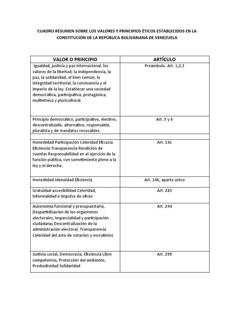 Cuadro Resumen Sobre Los Valores y Principios Éticos PDF