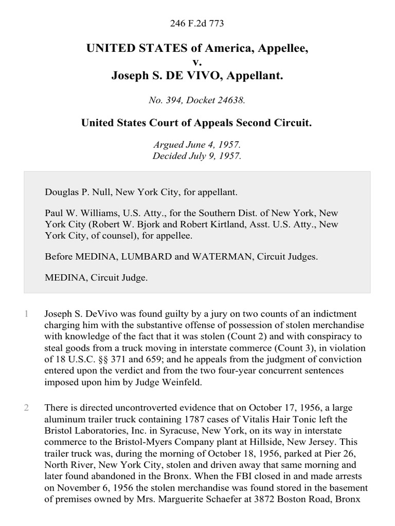 United States v. Joseph S. De Vivo, 246 F.2d 773, 2d Cir. (1957