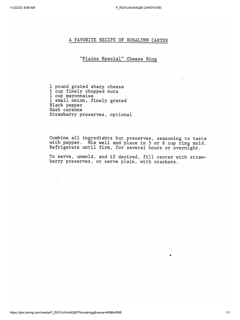 Plains Special Cheese Ring Recipe PDF