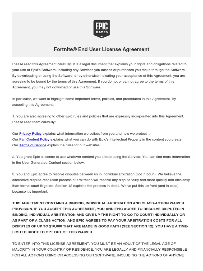 The fortnite end user license agreement (eula) can be referenced here. The fortnite end user license agreement (eula) can be referenced here. The fortnite end user license agreement (eula) can be referenced here. Fortnite® end user license agreement € please read this agreement carefully. It is a legal document that explains your rights and.