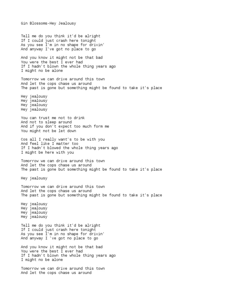 Hey jealousy is written in the key of f♯m. Learn what is your optimal key for this song and how to transpose it based on your. Chords for gin blossoms, hey jealousy.: Play along with guitar, ukulele, or piano with interactive chords and diagrams. Hey jealousy is written in the key of a major.