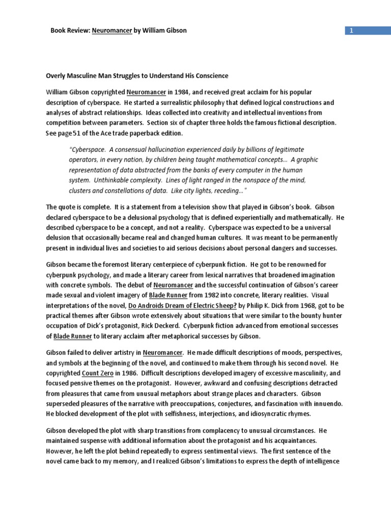 Neuromancer Review PDF Cyberspace Psychological Concepts