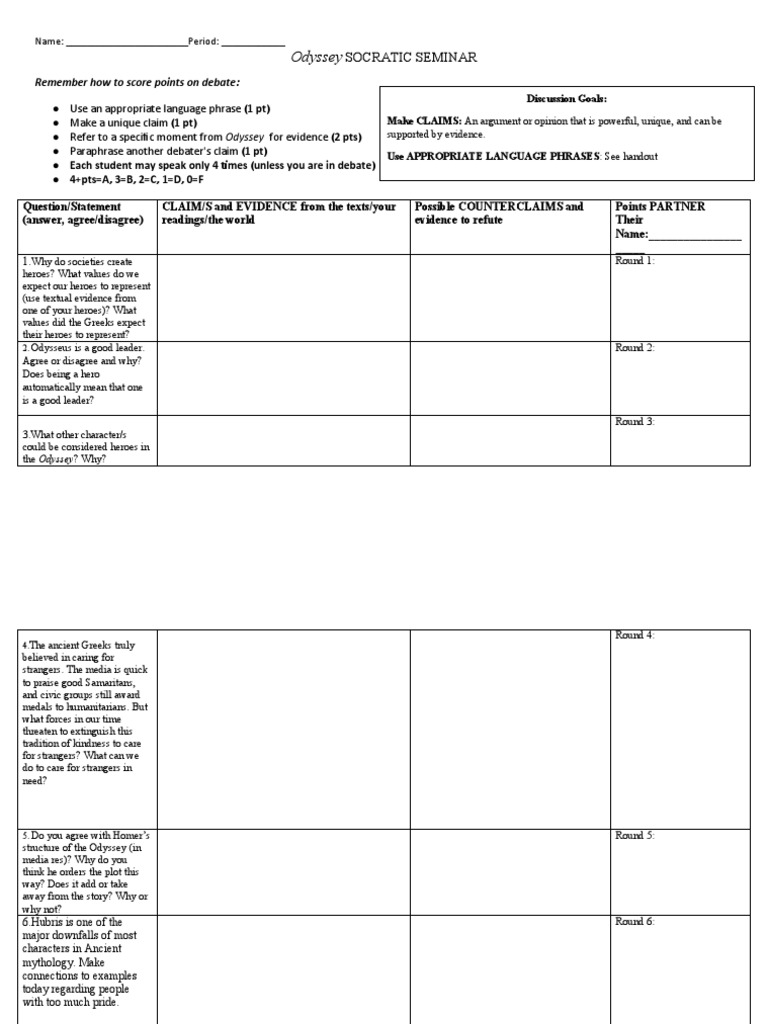 The Odyssey Socratic Seminar Pack Socratic seminar, Seminar, Homer